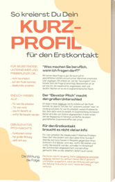 Erhalte mein freies eBook mit 8 Seiten. Hiermit kreierst Du Dein Kurzprofil für den Erstkontakt. Ganz klar auf den Punkt.
